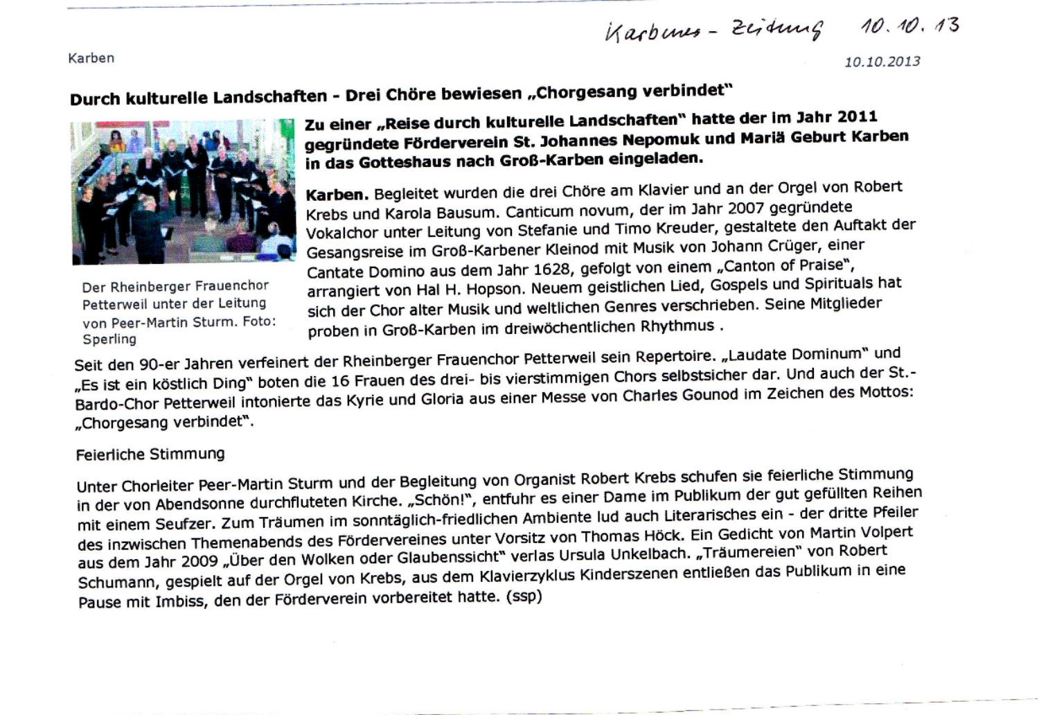 Konzert "Chorgesang verbindet" am 29. September 2013